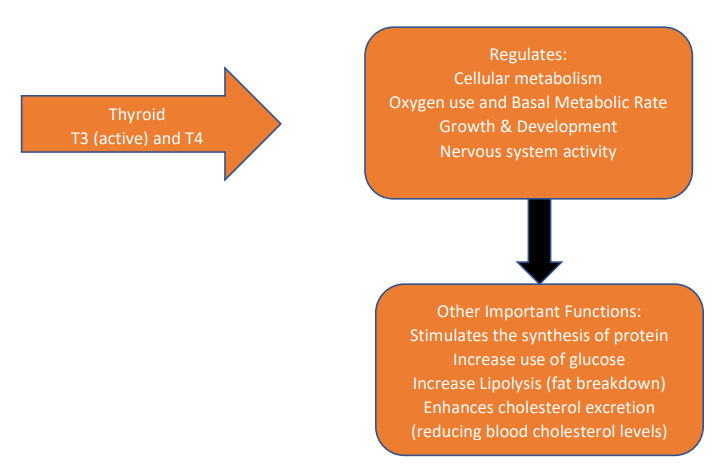 You may have heard people refer to the HPA Axis – Hypothalamus, Pituitary, Adrenal. As seen above, these are all part of the endocrine system and get a lot of attention because they are involved in the body’s stress response. However, some other endocrine glands are also involved in the production of the majority of our hormones. The graphic below is used to introduce them as well as their main functions.